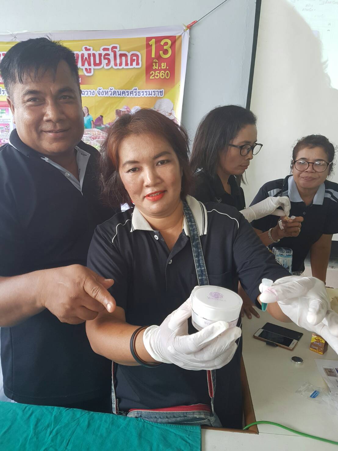 ได้จัด”โครงการชุมชนก้าวไกลไปกับงานคุ้มครองผู้บริโภค” ซึ่งได้รับงบประมาณสนับสนุนจากกองทุนหลักประกันสุขภาพตำบลละอาย ที่มาจาก สปสช และ อบต ละอาย มีผู้เข้ารับการอบรม 139 คน เป็น อสม นักวิทย์ชุมชน 2 คน โดยมี เภสัชกร จาก โรงพยายาลยุพราช (รพร) ฉวาง มาให้ความรู้ และ ตรวจสอบเครื่องสำอางตัวอย่าง โดยใช้ชุดทดสอบ 4 ชนิด