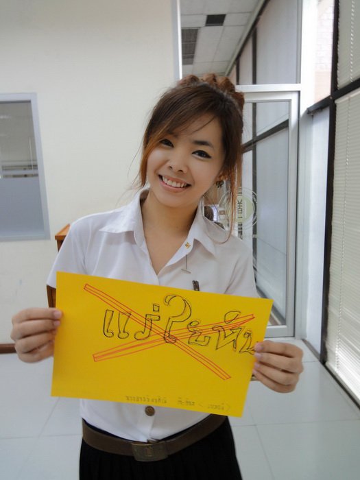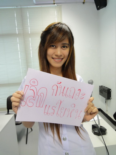 * ภาพนักศึกษาแถวที่ 1 - 2 นักศึกษาคณะศิลปกรรม เอกคอมพิวเตอร์ืกราฟฟิค มหาวิทยาลัยธุรกิจบัณฑิต ร่วมรณรงค์