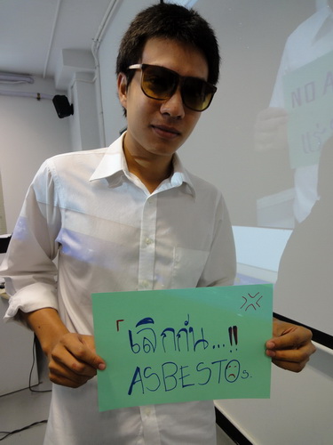 * ภาพที่ 3-4 ในแถวที่ 2 จาก ฉัตรชัย เทพเสนา แกนนำเยาวชนคุ้มครองผู้บริโภคจังหวัดสุรินทร์ ขอร่วมรณรงค์การเลิกใช้แร่ใยหินด้วย